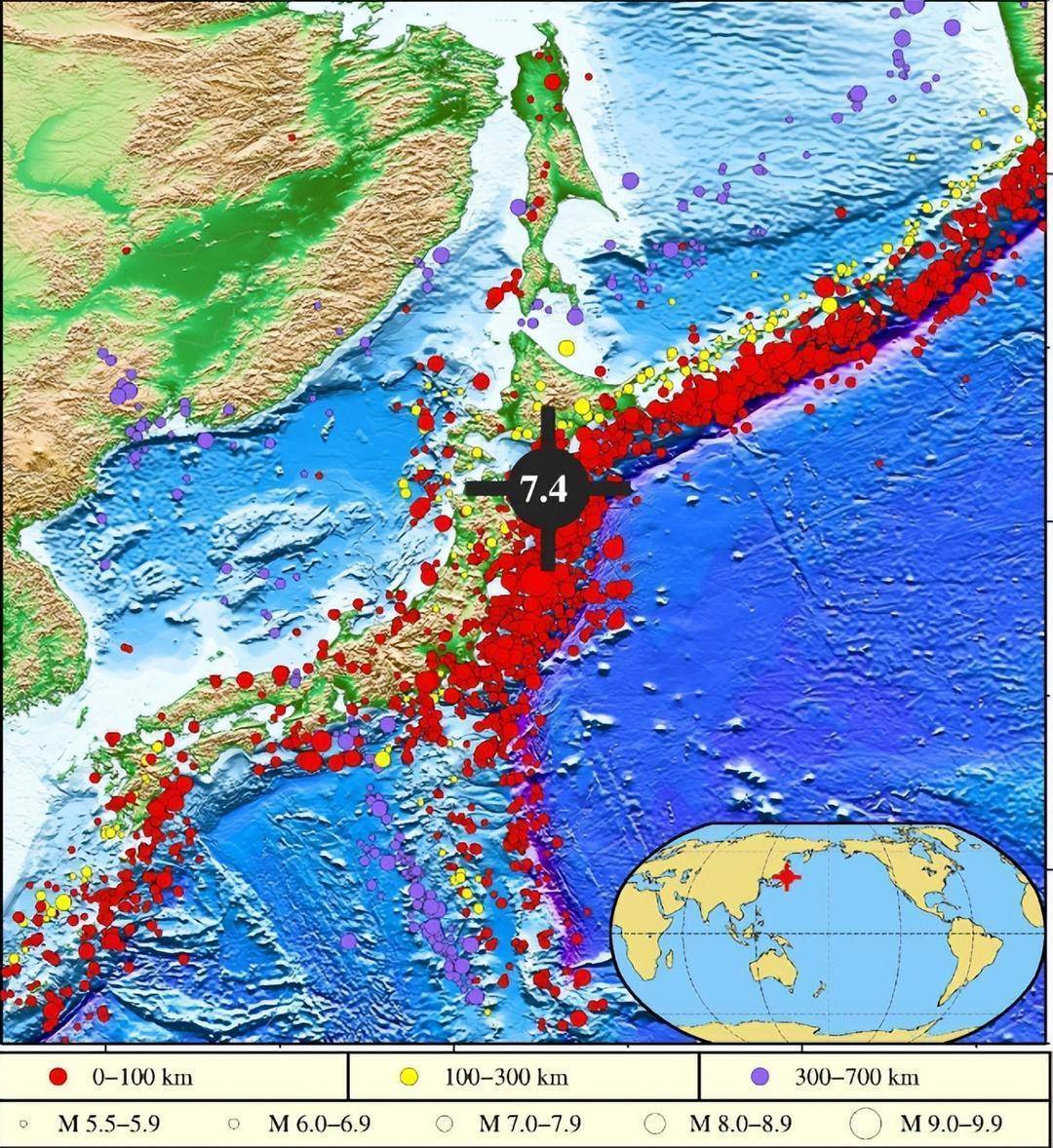 当然资源部海啸预警中心:日本7.4级地震可能会在震源周围激勉局地海啸,但不会对我国沿岸酿成影响