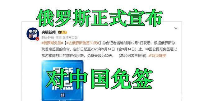 2025年12月1日,俄罗斯总统普京签署总统令,告示自签署之日起至2026年9月14日,对中国公民执行免签政策,适用规模包括旅游、商务等看成,单次停留最长可达30天,过境也可享受该政策。 值得珍爱的是,这一政策并非片面示好,而是平等修起。